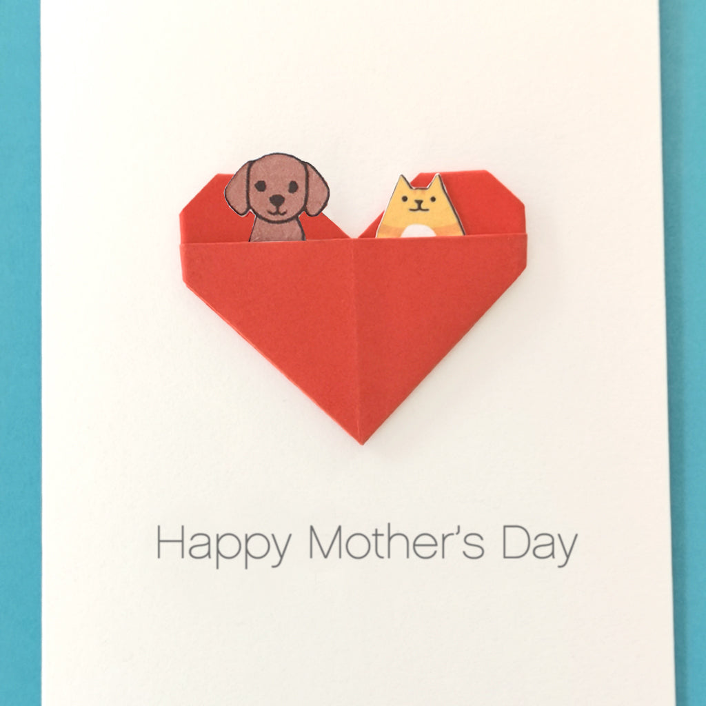 Send a fun Mother's Day card from your cat/s or dog/s this year with this personalised cat and dog Mother's Day origami heart card.