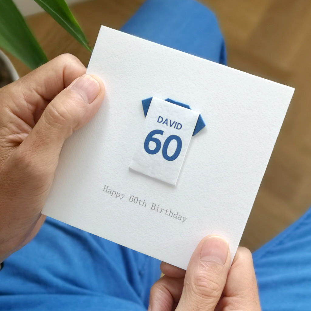 This card has a beautifully hand-folded origami football shirt on a 250 gsm square white card encased in a white envelope. It has been left blank inside for your own message. However, if you would like it posted directly to the birthday football fan, you can supply a message for the inside of the card which will be printed for you.