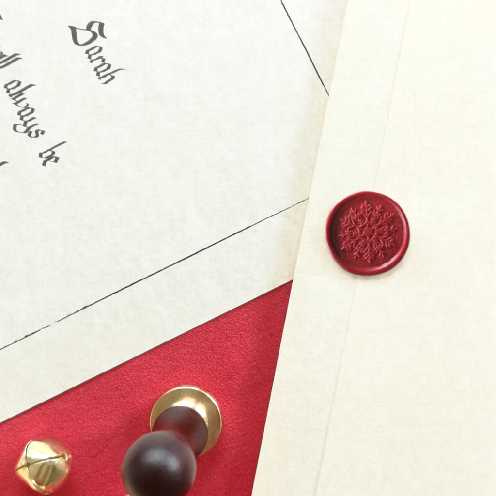 This personalised Traitors style Christmas Faithful Love Letter is made from 90gsm parchment paper. It is sealed with a snowflake wax seal, ready for you to give to your partner.